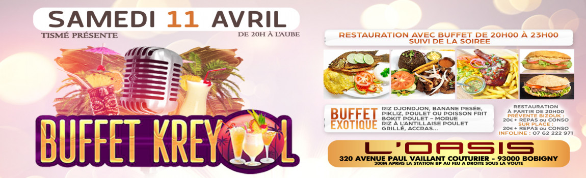 SOIRéE ANTILLAISE & BUFFET à VOLONTé CRéOLE