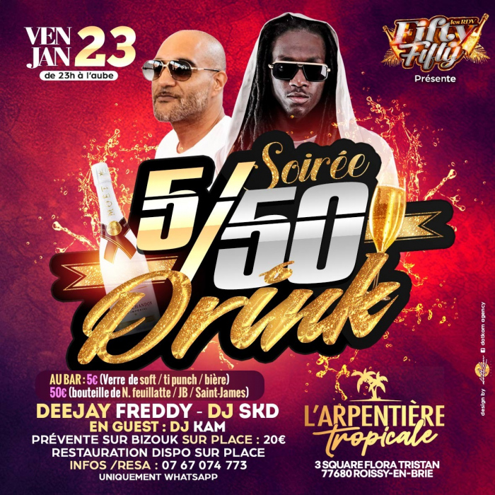 5 euros soft, ti punch ou bière et 50 euros bouteille de Nicolas feuillatte , JB ou Saint James