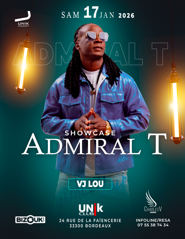 ADMIRAL T est l'artiste le plus écouté du moment, et a choisi l'UNIK CLUB a Bordeaux pour un show case exclusif.