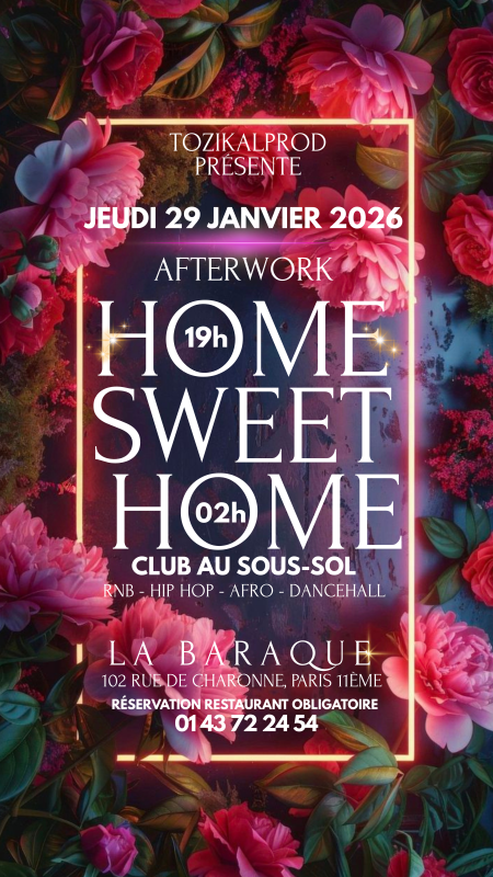 Chaque Jeudi c'est un Rendez-vous immanquable de 19h à 2h, dans l'atmosphère feutrée de " La Baraque " et sur ses deux espaces, vous pourrez diner sur la partie lounge , siroter un bon cocktail mais aussi danser sur la partie Club qui est au sous-sol sur les meilleurs sélections musicales du deejay . Musique : Rnb, Hip Hop, Afro, Dancehall Venez profiter avec vos collègues ou avec vos amis; pour des instants de partages et d'échanges conviviaux . Happy Hour de 19h à 21h sur la bière, le vin et les Cocktails
