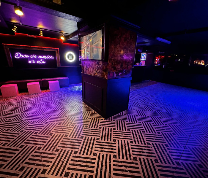 LIEUX SUR 2 NIVEAUX, UN COTé LOUNGE POUR LE RESTAURANT ET AU SOUS SOL LE COTé CLUB