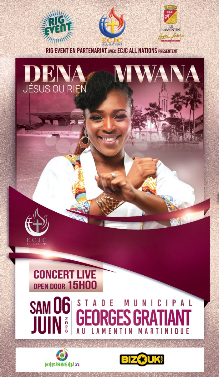 ECJC ALL NATIONS & RIG EVENT vous présentent DENA MWANA en concert en Martinique au stade du Lamentin le samedi 6 juin 2026.