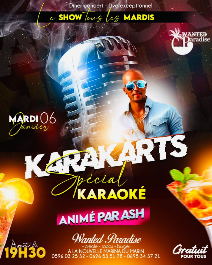 Tous les mardis dès 19h30, le Wanted Paradise t’ouvre ses portes à la Marina du Marin pour une soirée karaoké exceptionnelle