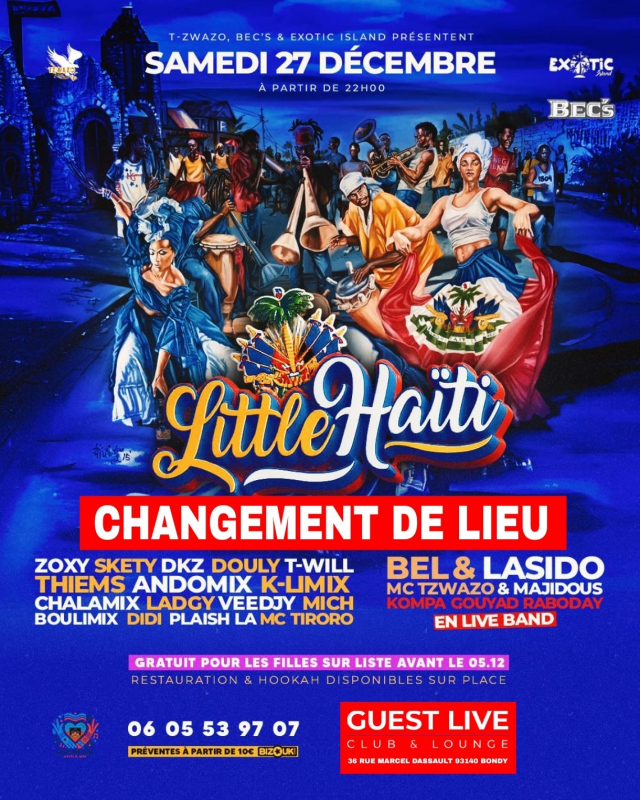 Live Band, DJs survoltés, ambiance “lakay”, performances, et toute la chaleur qui fait la magie d’Haïti.