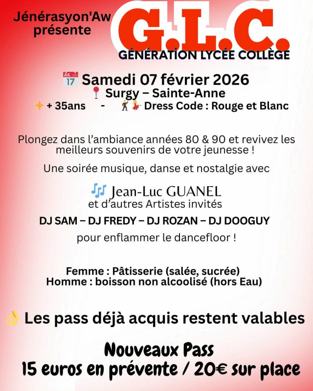 GÉNÉRATION AW PRÉSENTE "GÉNÉRATION LYCÉE & COLLEGE" ANNÉES 80 90, TOTAL ZOUK SOUVENIRS"