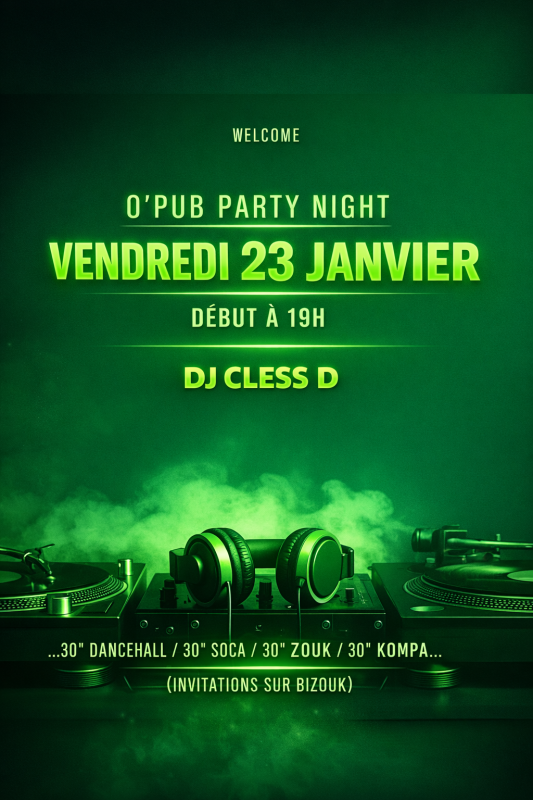 welcom to O’Pub le vendredi 23 janvier à partir de 19h avec DJ Class D