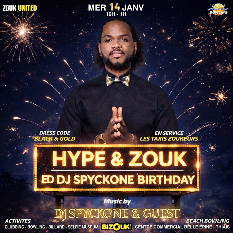 - Édition SpyckOne Birthday avec Dj SpyckOne & friends Ambiance, Zouk, Konpa-Gouyad, Dancehall, Bouyon, Hip-hop, Shatta, RnB, …