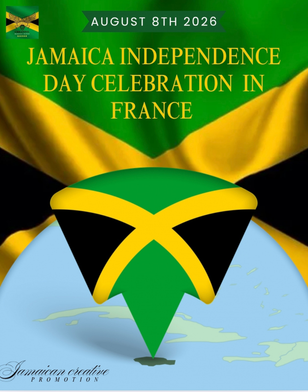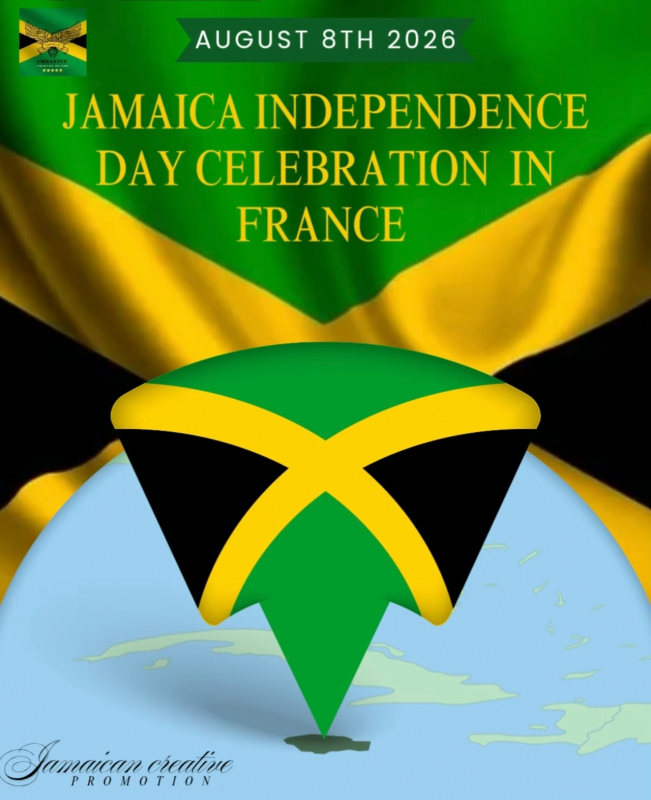 Depuis 1962, la Jamaïque a accédé à l'indépendance. Chaque année, nous célébrons notre fête nationale, un jour où tous les Jamaïcains se rassemblent pour faire la fête. Nous invitons tous ceux qui aiment la Jamaïque.Qui veut partager notre joie avec nous ? Au programme : musique, cuisine jamaïcaine, plein d'animations, jeux de dominos pour les enfants… C'est une journée en famille pour tous ! Rejoignez-nous le 8 août 2026 ! Partagez ! Notre joie est immense, cela fait 14 ans que Jamaican Creative Promotion organise cette célébration en France.