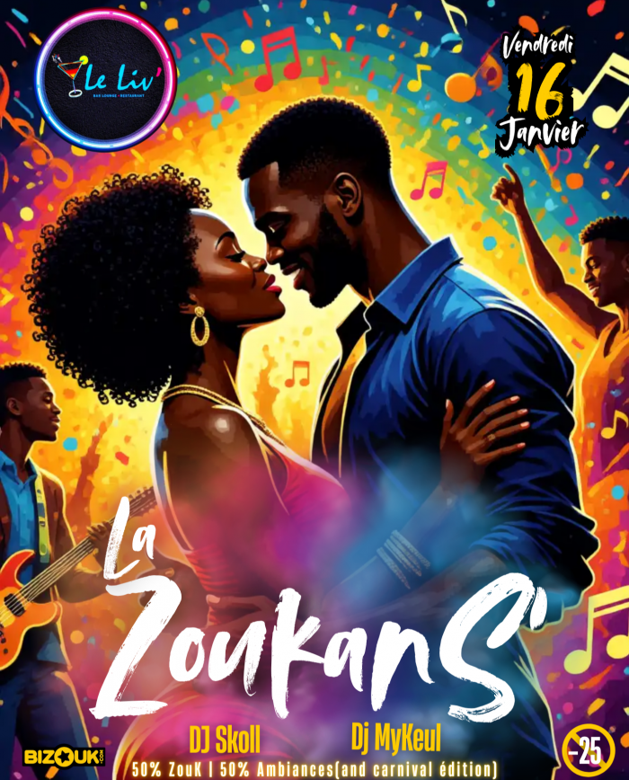 Le liv’bar vous souhaite ses meilleurs voeux et pour cela on vous invites à la première zoukans de l'année et en plus UNE ÉDITION CARNAVAL!lumière tamisée prépares tes reins, prépares ton cardio!