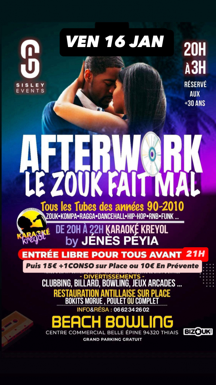 PUIS SOIRÉE  50% ZOUK / KOMPA  ET 50% AMBIANCEÂ