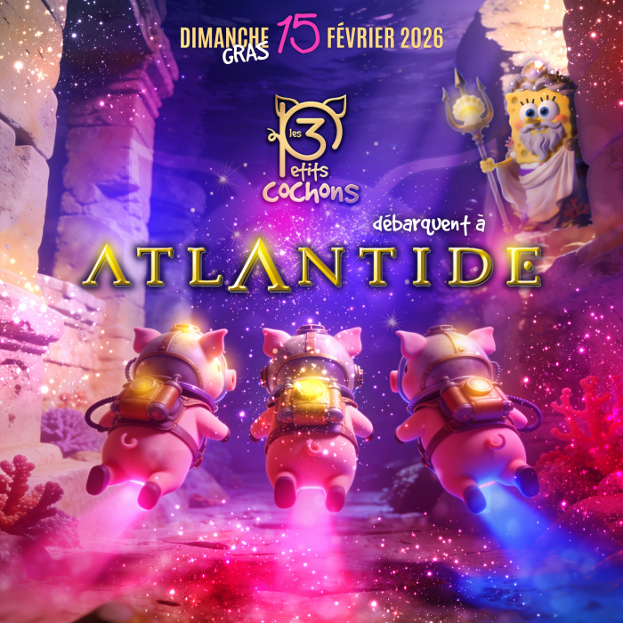 Pour ce Carnaval 2026, LES 3 PETITS COCHONS débarquent au-delà des colonnes d’Hercule, bien décidés à remettre un peu d’ordre sur le continent englouti : ATLANTIDE.