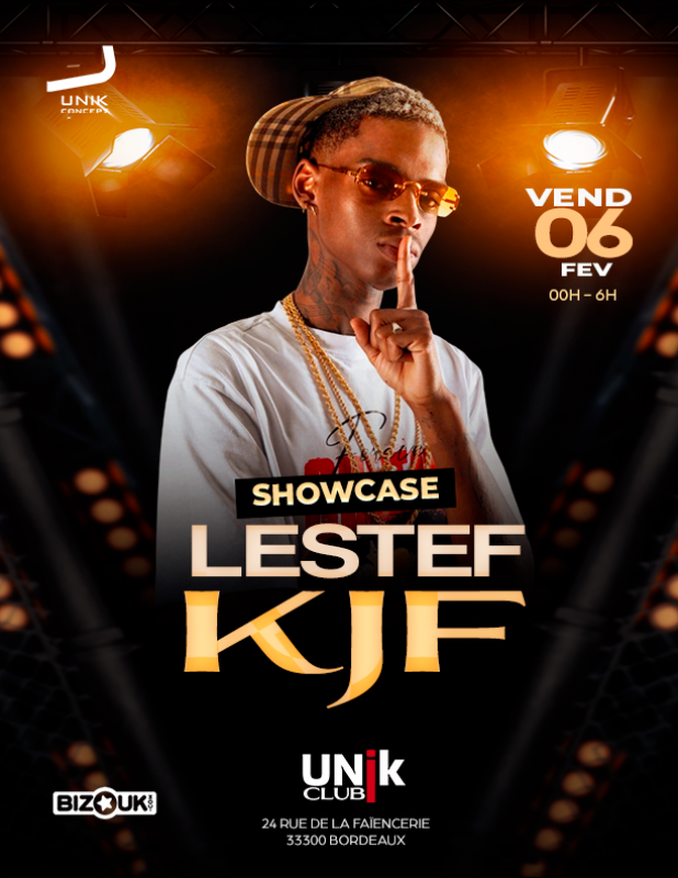 LESTEF a choisi l'unik club pour un showcase exclusif, il vous donne rendez-vous pour un show exceptionnel vendredi 6 fevrier 2026 à bordeaux. Une ambiance 100 % CARIBBEAN BOUYON SHATTA t’attends donc le rendez-vous est pris.