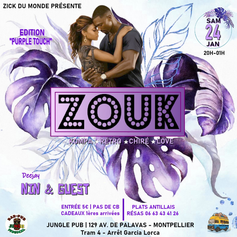 SAMEDI 24 JANVIER | L'INSTANT ZOUK & KOMPA | Edition "Purple Touch" | Djs Nin - Citylight - Yanik | Restauration Antillaise | Des Cadeaux