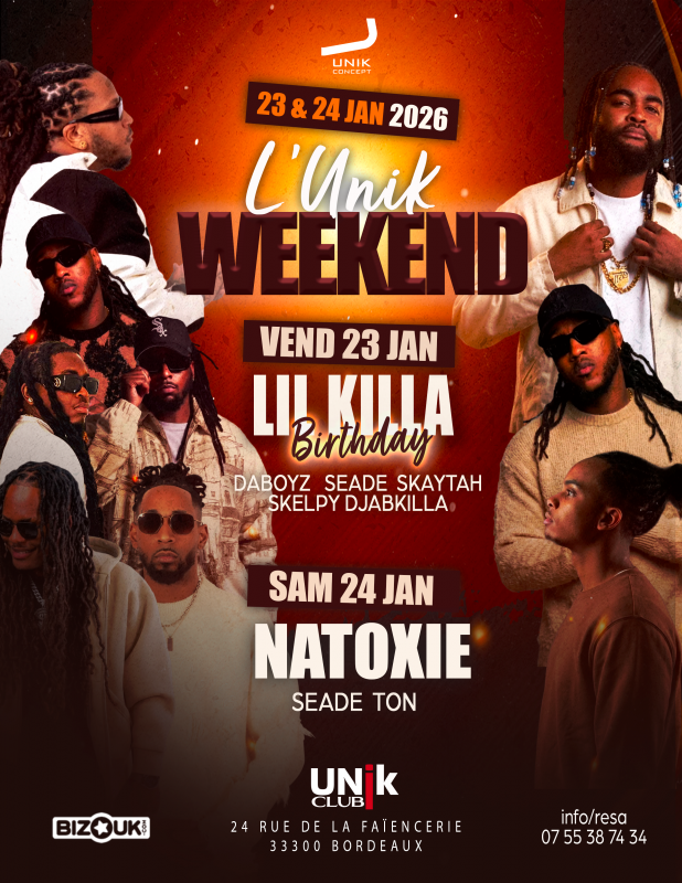 ❀ L'UNIK WEEK-END ★ VEND 23 JAN DJ LIL KILLA BIRTHDAY ★ SAM 24 JAN NATOXIE EN GUEST ❀
