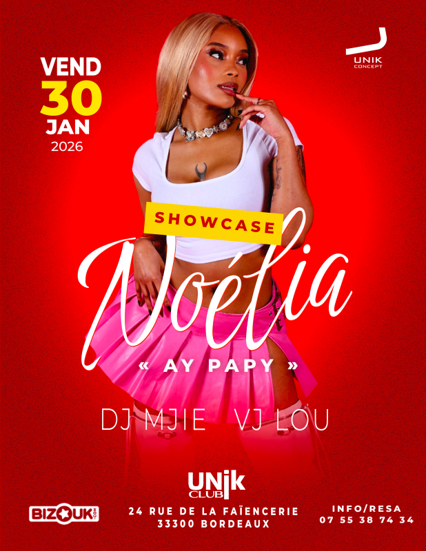 NOÉLIA a choisi Bordeaux pour un show case exclusif dans le département à l'occasion de sa venue, elle vous donne rendez-vous pour un show exceptionnel vendredi 30 janvier 2026 a l'unik club