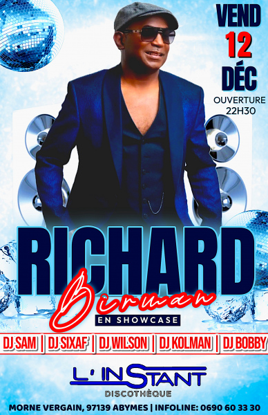 Vendredi 12 Décembre, la discothèque L’INSTANT vous ouvre ses portes dès 22h30 pour une soirée d’exception avec l’artiste incontournable Richard Birman !