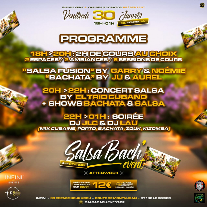 Le Vend. 30 janvier 2026 : c'est la rentrée de la Danse avec #SALSABACH' EVENT N°4 : concert live + cours + soirée à INFINI EVENT GOSIER !