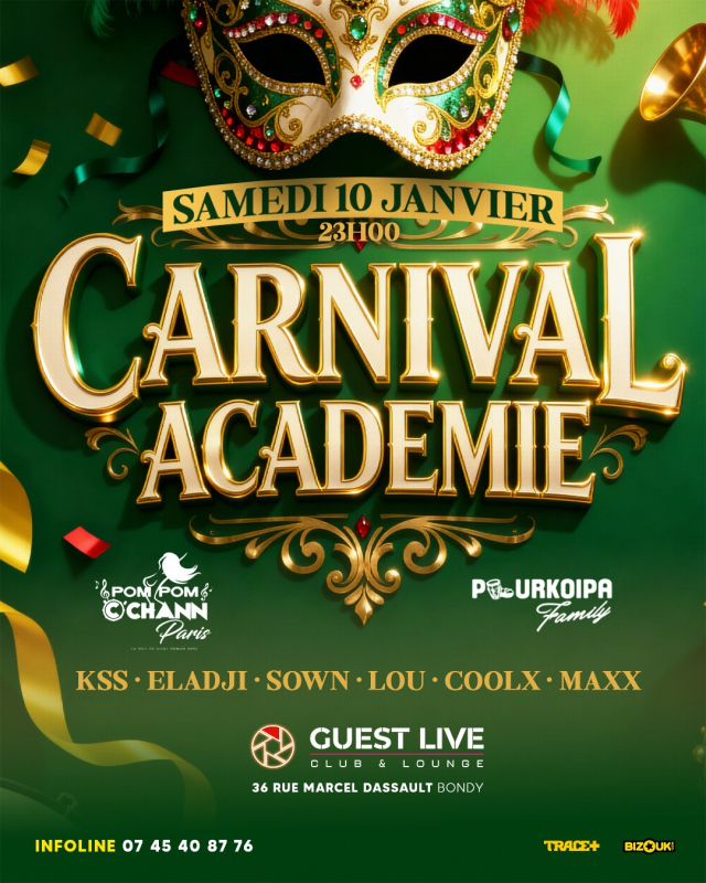 À 23H : déposez vos affaires au vestiaire, on passe en mode soirée Spéciale Carnaval avec les groupes Pompom C'Chann et Pourkoipa Family les meilleurs dj de la capitale : Kss, Eladji, Djo, Lou, Maxx…,